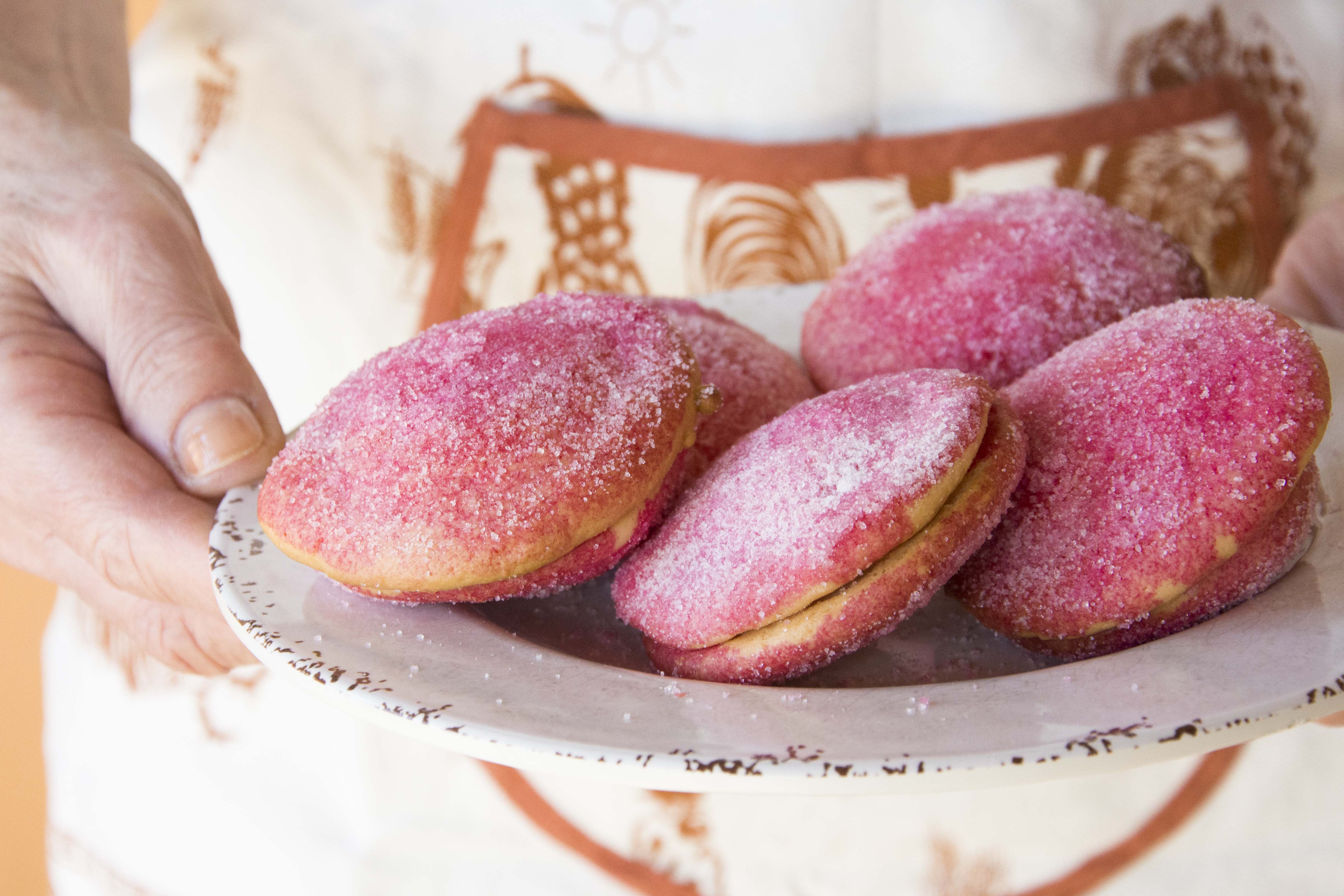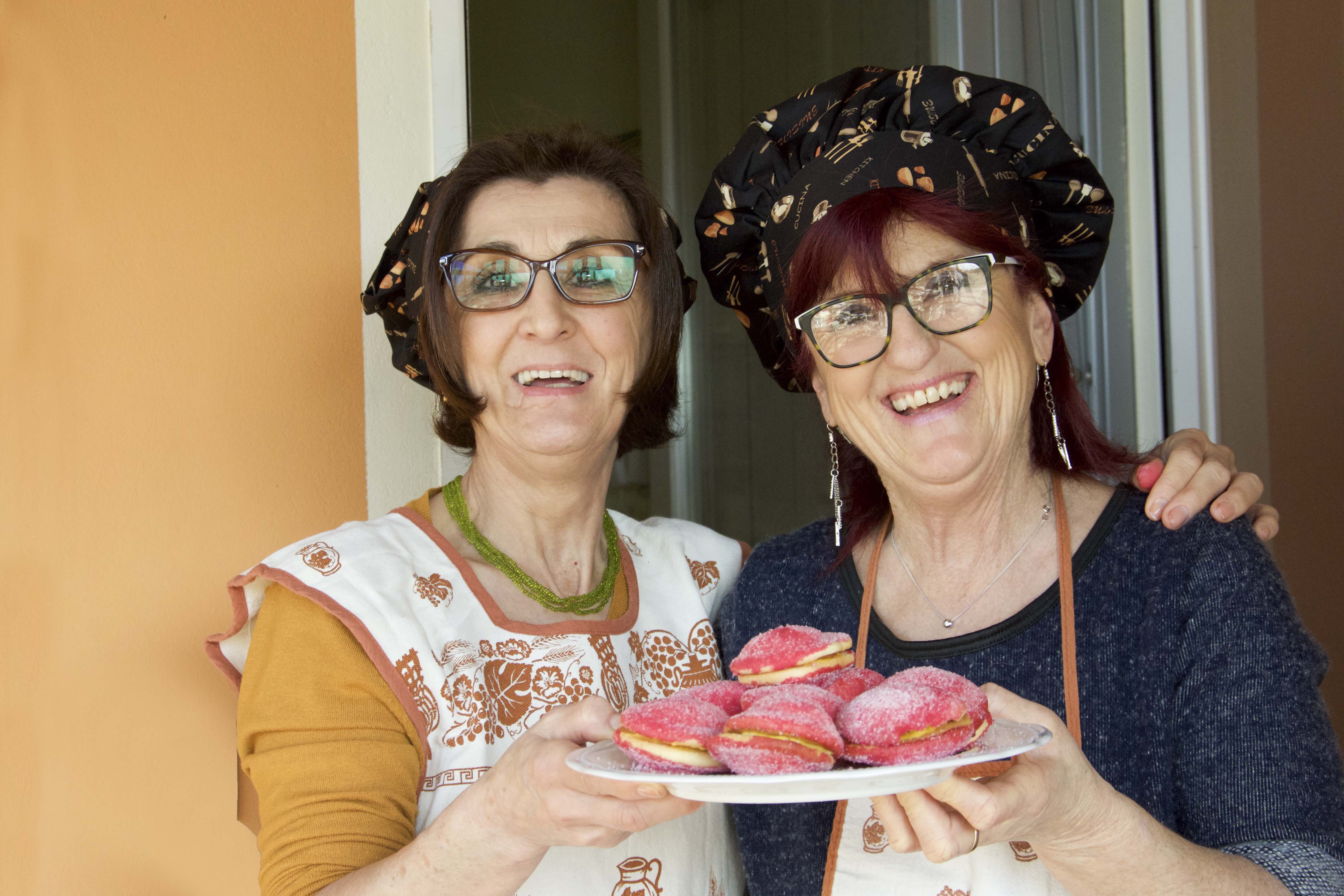 Lo scorso weekend alla Caffelatteria ve le abbiamo proposte”proprio come mamma le ha fatte”, è il caso di dire… ho chiesto alle Sorelle Neri di prepararle ed eccole qui, in tutto il loro splendore… è stato un pomeriggio molto divertente, di complicità in famiglia e di divertimento puro… è stato molto bello vedersi sporcare le mani e giocare in cucina come hanno sempre fatto da bambine, e improvvisarsi Pasticcere per un giorno, davanti a una telecamera. In Gelatteria invece, non potevo non creare un gusto che fosse un po’ così romantico, del profumo della mia infanzia.