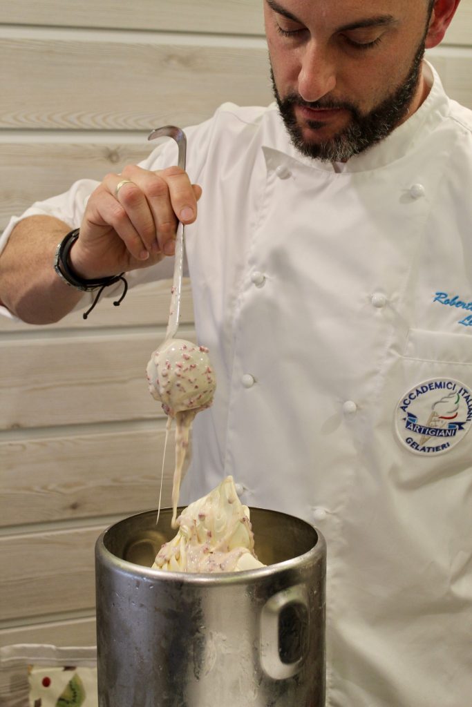 Ed é proprio Maurizio ad avermi invitato all’inaugurazione, avendo l’onore di preparare con una vecchia Carpigiani il mio gelato che ha regalato il nome a questo bellissimo locale.